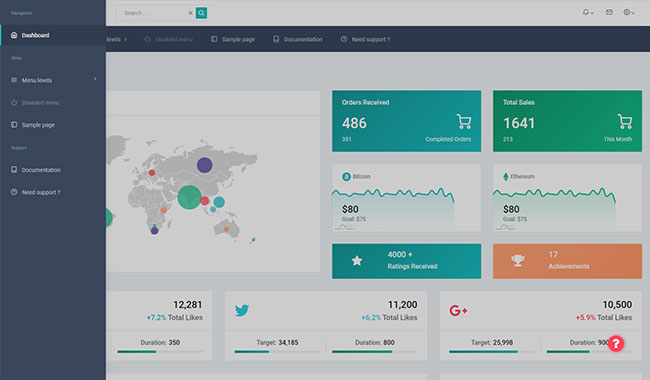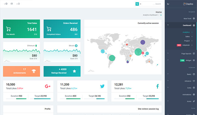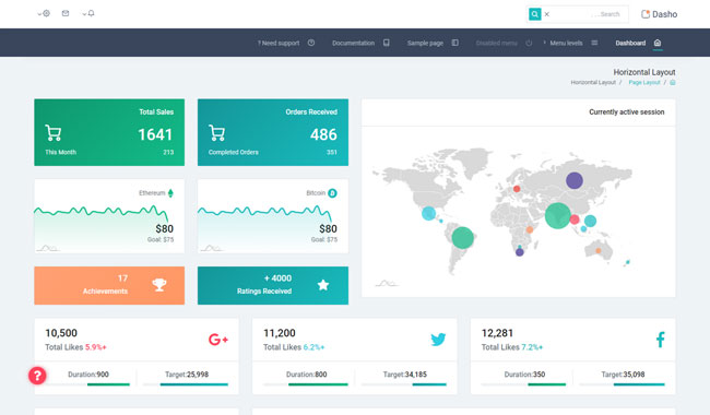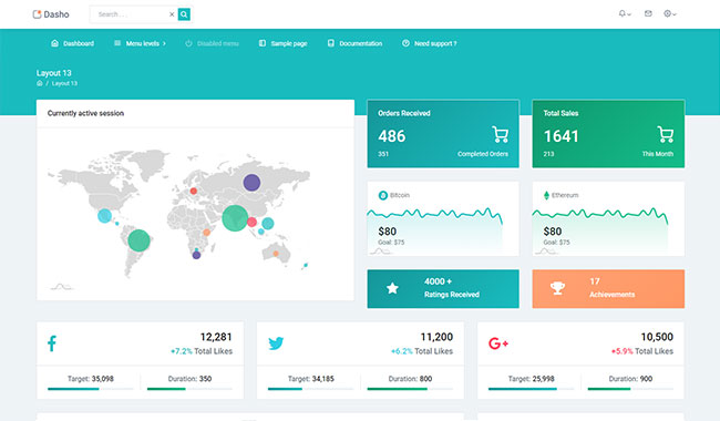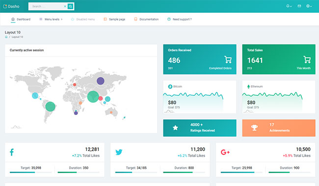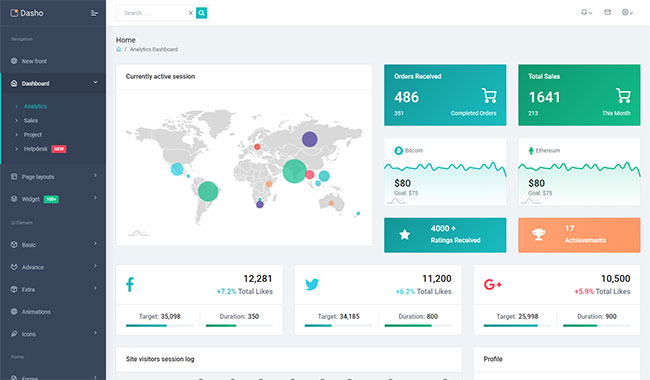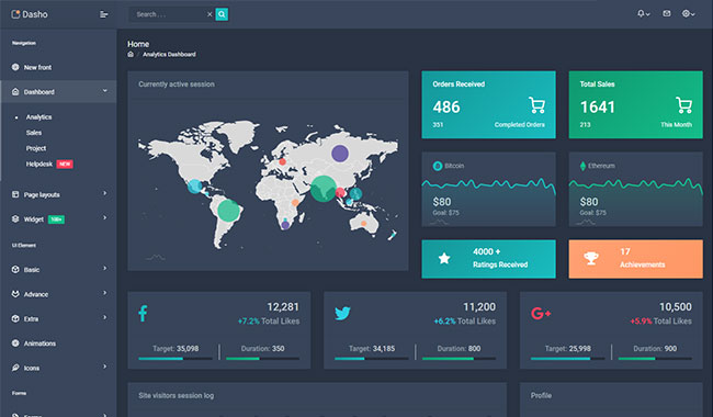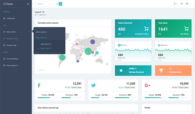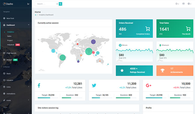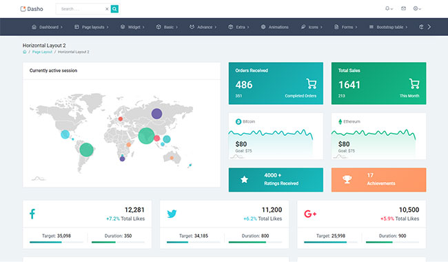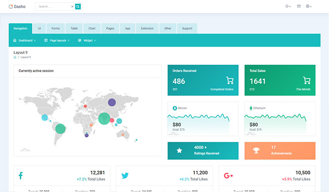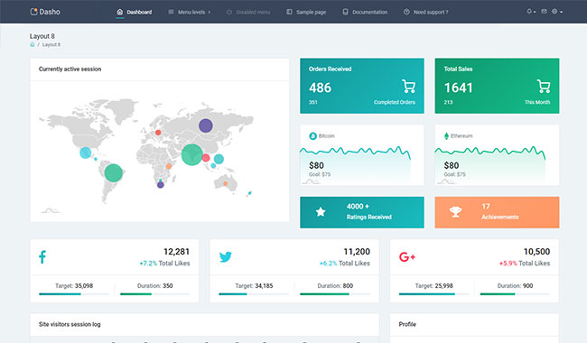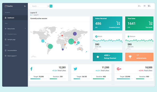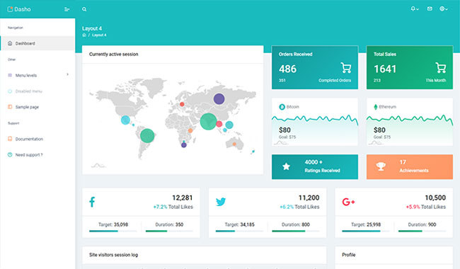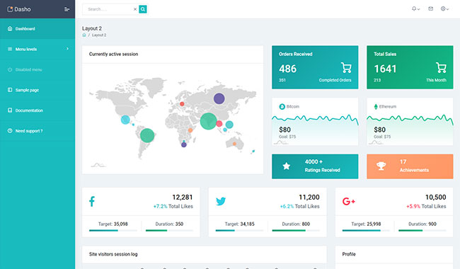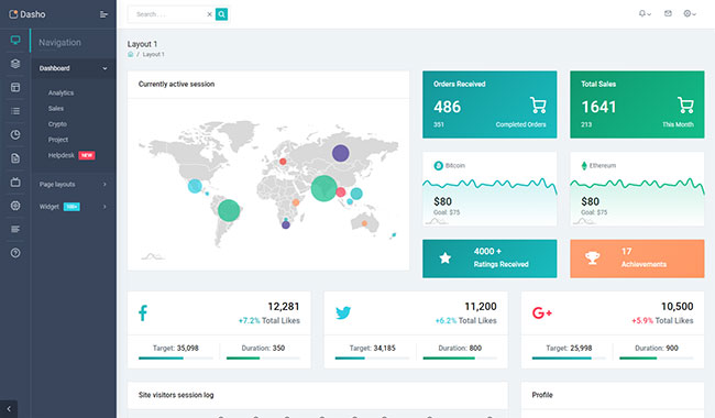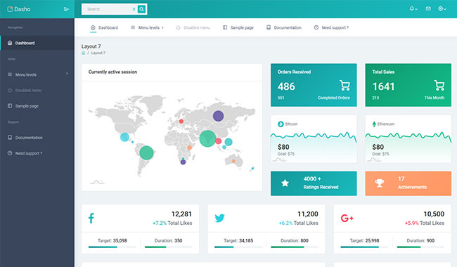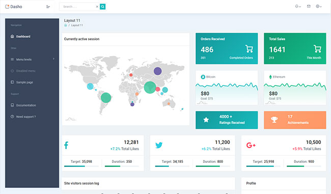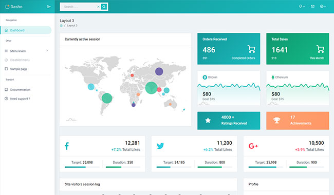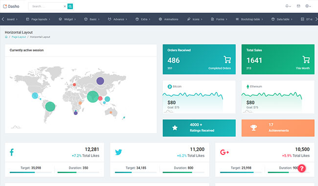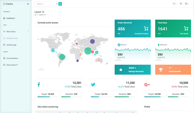 Dasho is premium dashboard template comes with tons of layout options, widgets, ready to use pages which completely suitable for any simple/complex project.